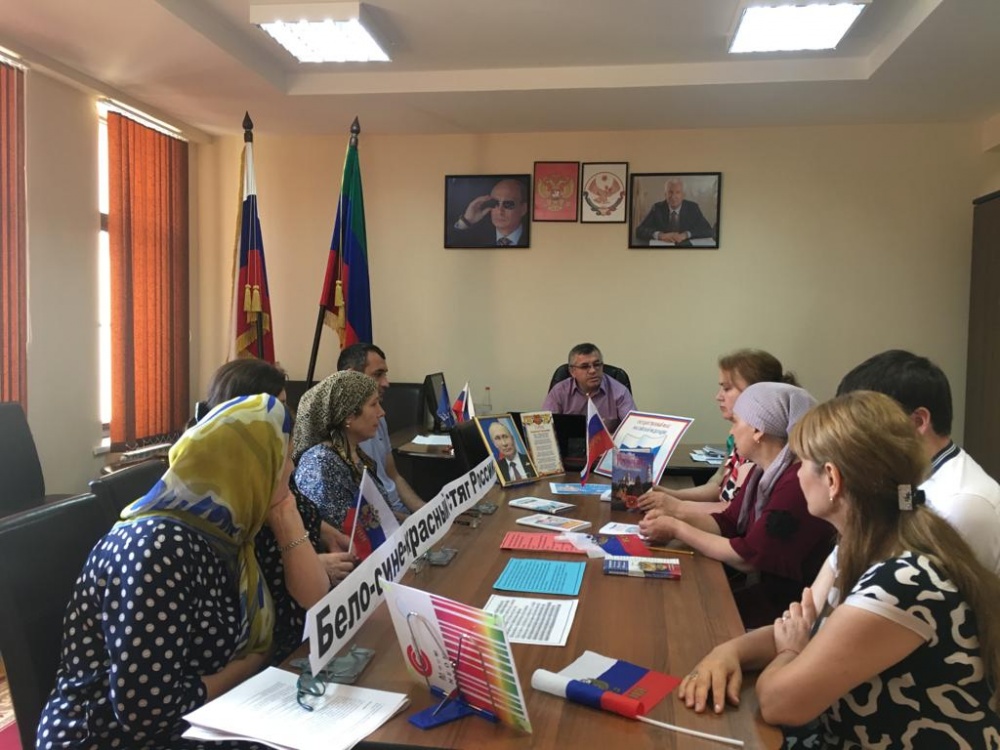 Накануне, по сложившейся традиции в рамках празднования Дня Государственного флага РФ работники культуры и заведующие библиотечной системы, провели круглый стол под эгидой « Бело – синий – красный стяг России», где участников мероприятия от имени Главы района, Джамбулата Салавова, поздравил начальник отдела культуры района, Абдула Абдулаев.