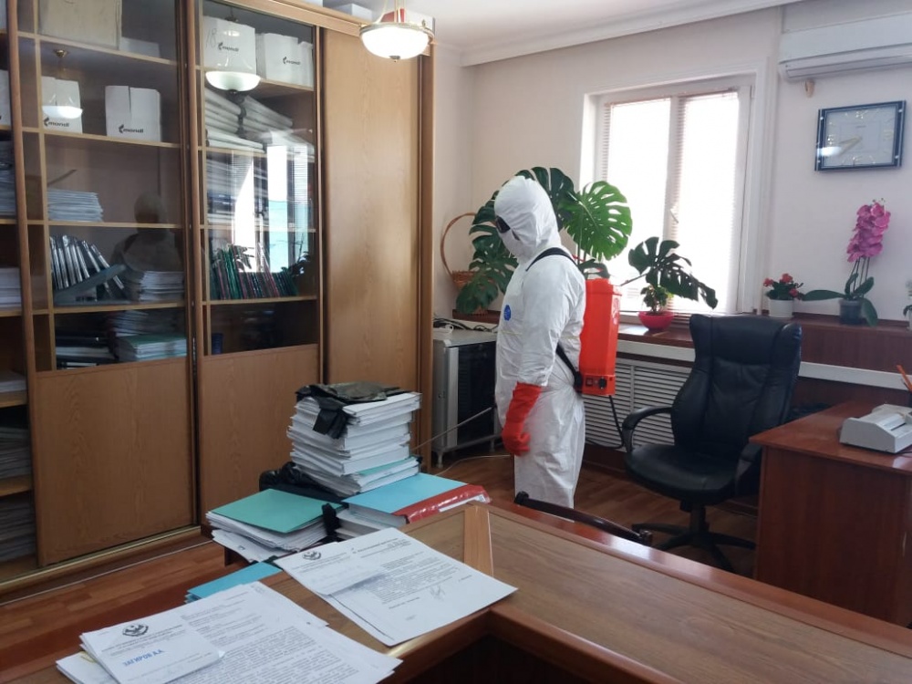В зданиях и служебных помещениях администрации и территориальных организаций и ведомств Хасавюртовского района провели очередные дезинфекционные мероприятия