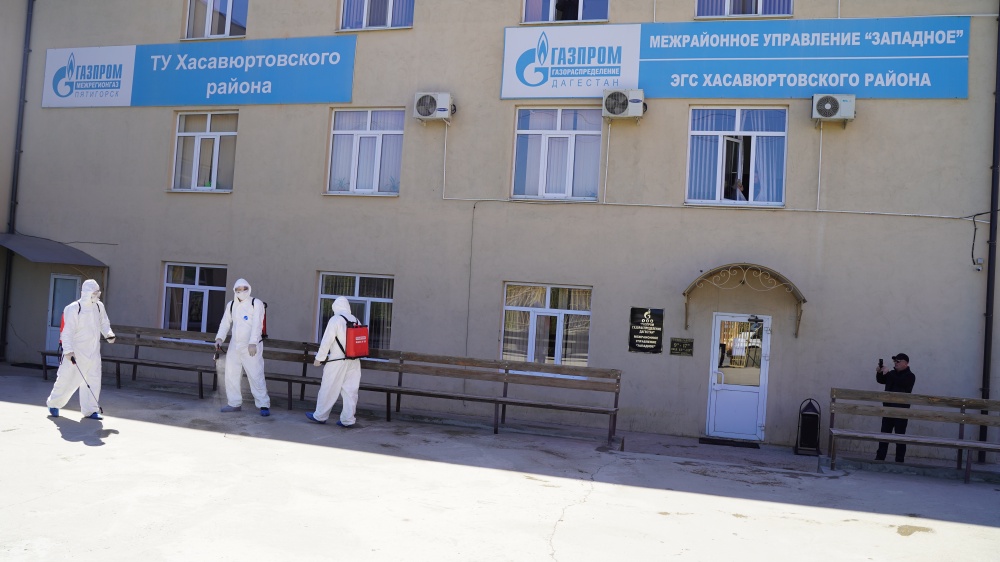 Сегодня в здании и рабочих помещениях газовой службы района, в частности организации  « Газпром газораспределение Дагестан» управление « Западное » ЭГС Хасавюртовского района и территориальной абонентской службы, провели плановые дезинфекционные мероприятия, по обеззараживанию территорий.