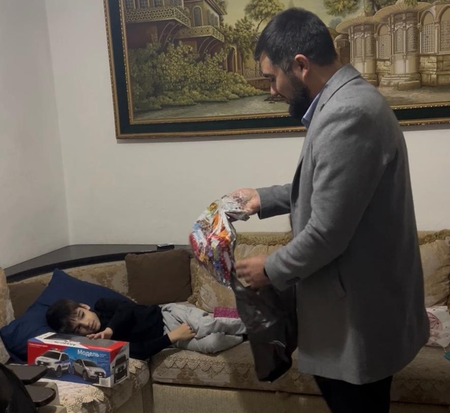 Так, первый заместитель главы администрации Багаутдин Мамаев, выехал в селение Тотурбийкала, где навестил ребенка с ограниченными возможностями и передал в подарок беговую дорожку и корзину подарков от Первого заместителя Председателя Правительства РД Руслана Алиева. Также заместители главы администрации, начальники управлений и отделов, выехалив поселения района, где вручили подарки, корзины сладостей детям участников СВО, детям с ограниченными возможностями,