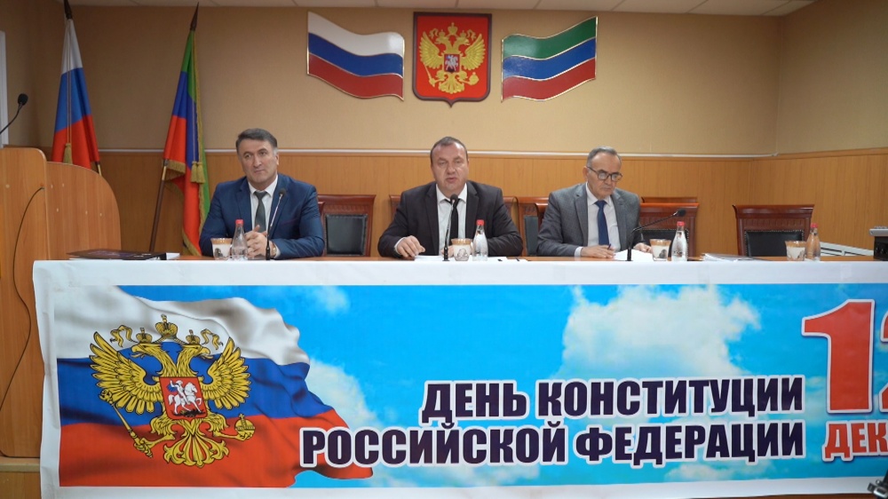 Накануне в администрации района, состоялось торжественное собрание актива района, посвященное Дню Конституции РФ. В праздничном мероприятии приняли участие аппарат администрации, руководители структурных подразделений, главы поселений, руководители общественных и молодежных организаций, духовенство и СМИ района. Открывая торжественное собрание, первый заместитель главы администрации района, Багаутдин Мамаев, от имени Главы района, Джамбулата Салавова, аппарата администрации, поздравил участников собрания и жителей района, с государственным праздником России, отметив, что Конституция РФ – это основной закон жизнедеятельности страны, в котором права и свобода гражданина признаны высшей ценностью.