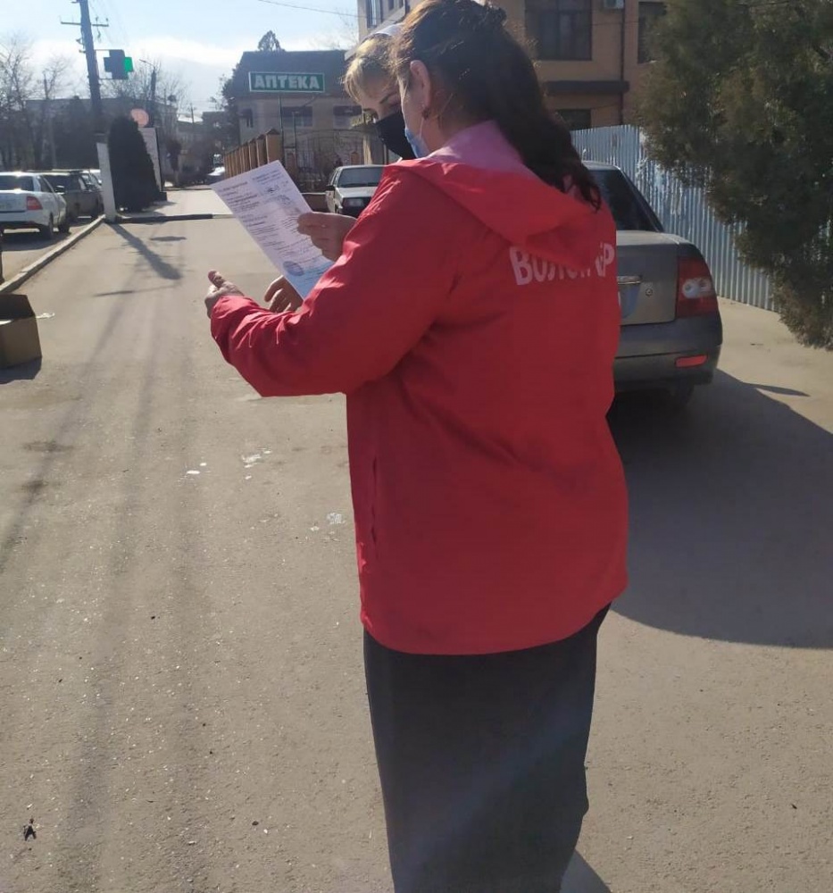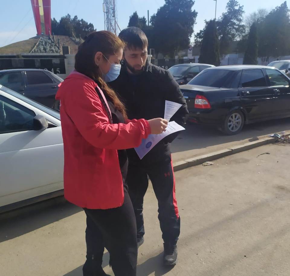 Волонтеры общественно патруля Хасавюртовского района проводят информационно – разъяснительную работу о важности вакцинации как защиты от Covid-19