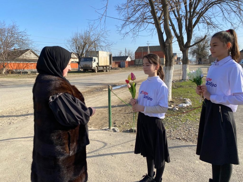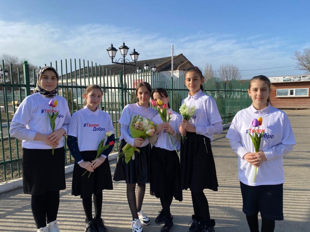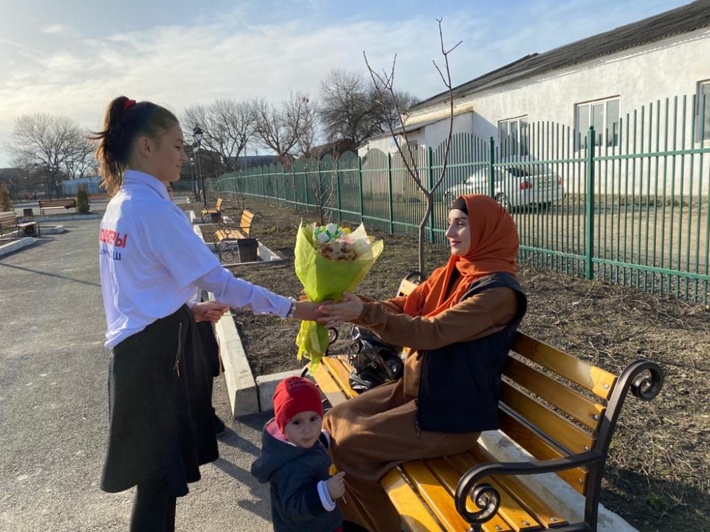 В канун празднования Международного женского дня волонтеры общественного патруля и сотрудники Молодежного центра администрации Хасавюртовского района провели Всероссийскую акцию «Вам, любимые!», в рамках которого роздано более 1000 цветов.