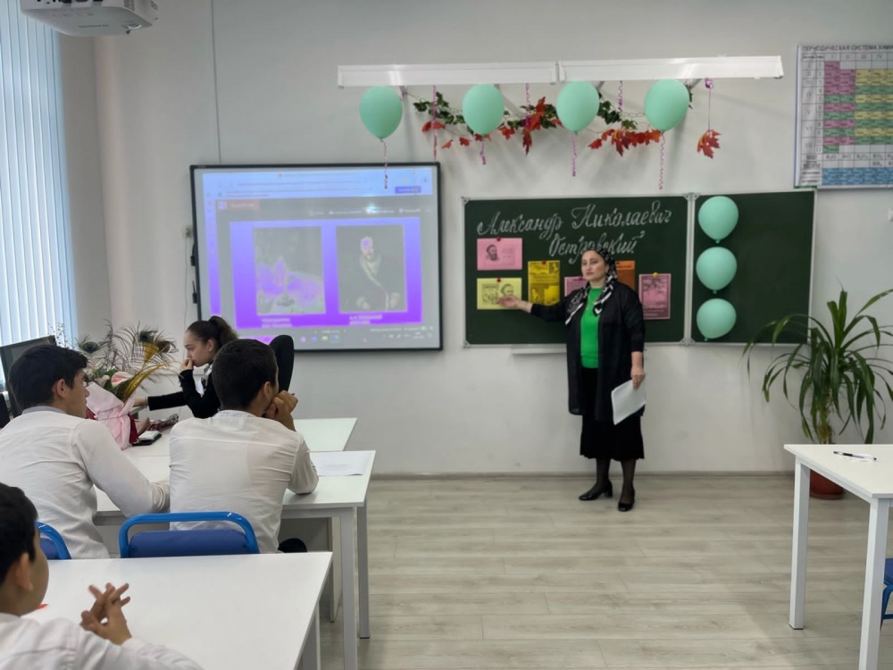 С 9 по 13 апреля 2023 года в образовательных организациях Хасавюртовского района для обучающихся 8-11 классов прошел Всероссийский урок, посвященный 200-летию со дня рождения А.Н. Островского. Обучающиеся решали кроссворд, составляли крылатые выражения, играли в игру «Закончи афоризмы», составляли карту произведений А.Н.Островского. Беседа о творчестве А.Н. Островского сопровождалась презентацией, аудио- и видеофрагментами по произведениям драматурга. После просмотра педагоги с учениками обсудили вопросы творчества, а также сделали выводы о том, какое наследие великого русского драматурга осталось в культурной жизни нашей страны.