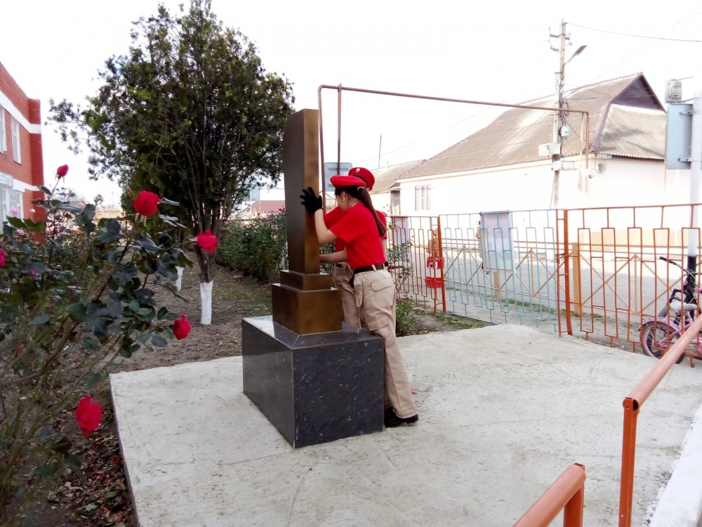 « Территория возле памятника закреплена за нашей школой. Учащиеся школы ежегодно добросовестно ухаживают за ней. Благоустройство памятного места - это, та малая часть наших дел, с помощью которых мы выражаем свою благодарность всем тем, кто оставил свою жизнь, ради мирного неба в будущем. И наша главная задача как можно дольше пронести эту память, через года. Будем вечно помнить и чтить память тех, кто ценой своей жизни подарил нам мир и свободу» - отмечено участниками субботника.
