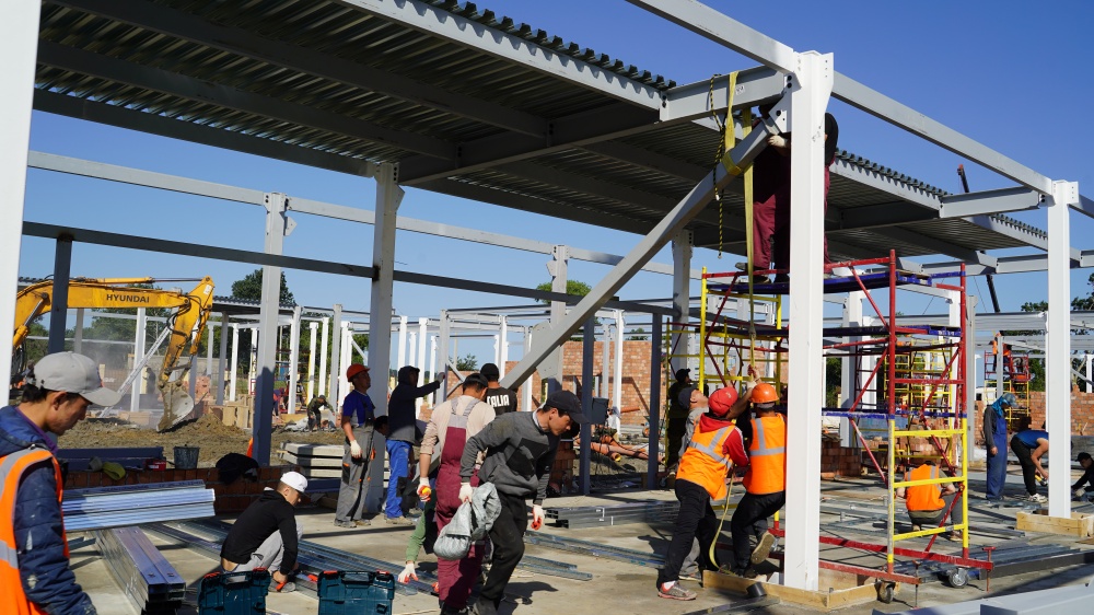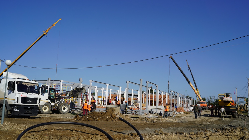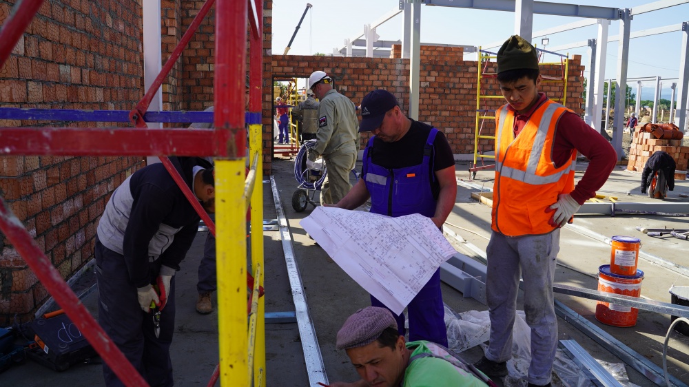 « Строительство идет круглосуточно, качественно и строго в соответствии с графиком. Благодаря всесторонней поддержке Главы района, Джамбулата Салавова, мы не испытываем затруднений с поставками материалов и другими рабочими вопросами.На объекте задействовано 655 человек, в том числе 150 местных жителей, в работе используем местные строительные материалы, песок, кирпич, бетон, спецтехника, дорожные работы проводит ООО Нарт», специализированная организация по строительству и реконструкции автомобильных дорог, гидротехнических, энергетических и других сооружений. Полностью завершены работы по устройству стяжки пола, продолжаются работы по монтажу металлоконструкции, кирпичная кладка внутренних перегородок и др. Сразу же по приезду, нас встретили очень хорошо, Главой района, были созданы комфортные условия пребывания, оперативно организованы вопросы питания и медобслуживания. Мы идем плотно в соответствии с установленным графиком работ, что бы в ближайшее время населению стала поступать медицинская помощь » - отметил особенности строительства гендиректор военно – строительной компании, Анатолий Алексеев.