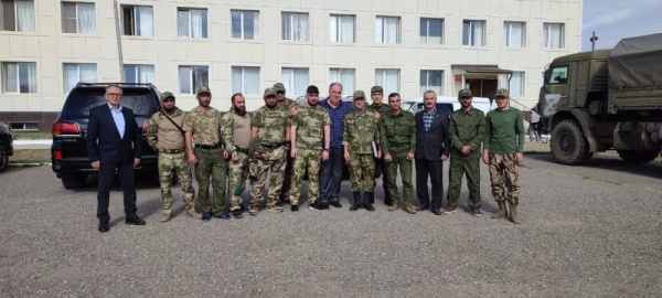 Сегодня депутат НС РД Ибрагимов Руслан, заместитель начальника МКУ Управление ФК спорта и делам молодёжи Вахит Касимов, начальник отдела военного комиссариата Артур Аджиев посетили воинскую часть, где проходят подготовку граждане  признанные по мобилизации Хасавюртовским военным комиссариатом. Мобилизованным были переданы напутственные слова Главы МР  района Арсланбека  Алибекова,  а также спальные мешки с ковриками, продуктовые наборы  и бутилированную воду.
