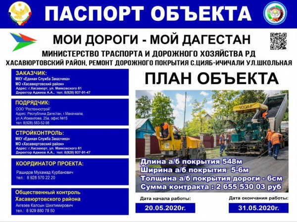 7. Ремонт дорожного покрытия по ул. Школьная, с.Цияб Ичичали Хасавюртовского района: