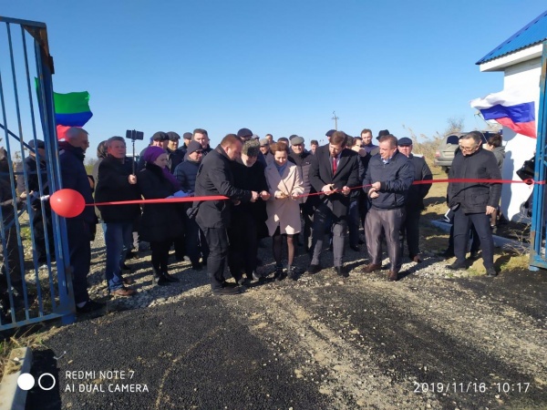 « Уважаемые гости! жители села! Сегодня мы открываем социально важный объект, где произведено присоединение водовода к существующей линии водоснабжения и жители села Аксай получат качественную питьевую воду. От имени Главы района Джамбулата Салавова, собрания депутатов и администрации, сердечно поздравляю жителей села Аксай с завершением 1-ой очереди объекта водоснабжение, также хочу поблагодарить наших подрядчиков ООО «Гранит» за качественную работу и главное завершение работ в установленные сроки» — отметил первый заместитель главы администрации района, Багаутдин Мамаев. Далее торжественную церемонию разрезания символической красной ленты провели Анна Безрукова, Марат Абдулгамидов, Багаутдин Мамаев и подрядчик объекта Адиль Гереев.