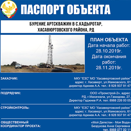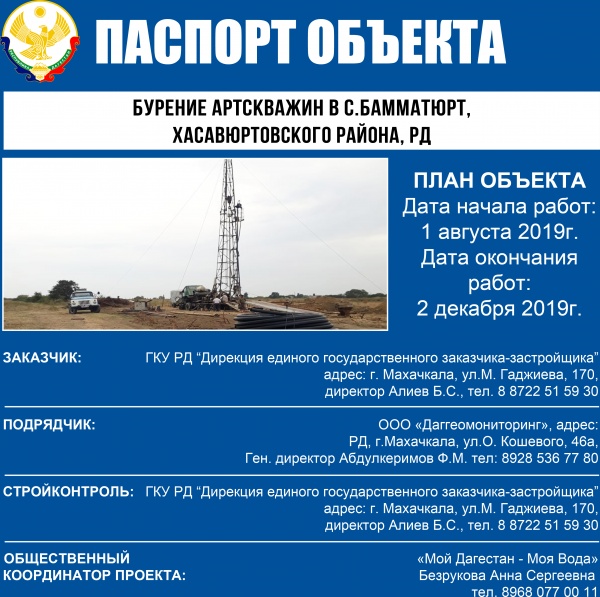 Заказчиком объекта является ГКУ РД "Дирекция Единого Государственного заказчика — застройщика", Подрядчиком является ООО "Даггеомониторинг".