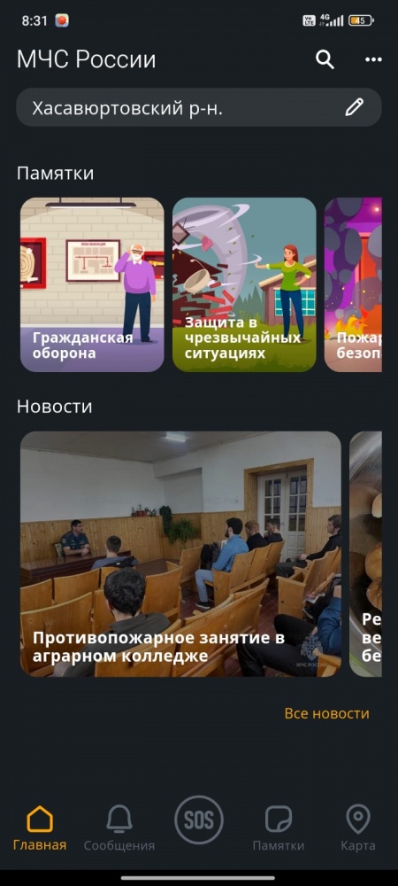 Главное управление МЧС России по Республике Дагестан сообщает, что в рамках доведения до населения оперативной информации об угрозе и возникновении чрезвычайной ситуации разработано приложение для мобильных устройств «МЧС России», где добавлена функция быстрого вызова экстренных оперативных служб, а также возможность получения пользователями приложения (при условии активного режима местонахождения «геолокации») pushсообщений с экстренной информацией. Приложение «МЧС России» является карманной энциклопедией и вашим личным помощником в опасных (кризисных) ситуациях. Приложение успешно функционирует на мобильных устройствах под управлением операционных систем на базе IOS и Android и доступно в магазинах приложений App Store, Google Play и Rustore.