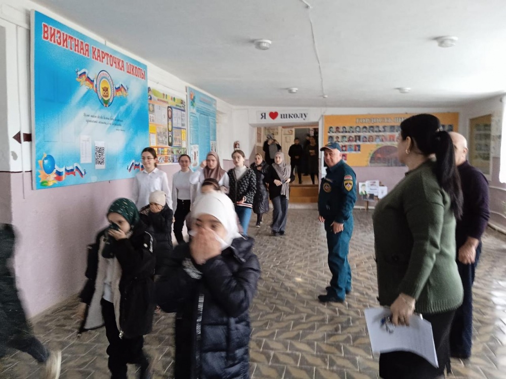 Начальник отдела ГО МКУ «Управление по делам ГО и ЧС Хасавюртовского района» Абдулнасир Тавбиев провел инструктивную беседу с руководством и педагогическим коллективом по правилам поведения при ЧС различного характера (пожар, землетрясение) и при угрозе или возникновении террористических актов, а также принял участие при проведении практической (учебной) эвакуации учащихся из здания школ. Главный специалист МКУ «Управление по делам ГО ЧС Хасавюртовского района» Абдурашид Гамзатов ознакомил присутствующих с основными понятиями в области гражданской обороны.