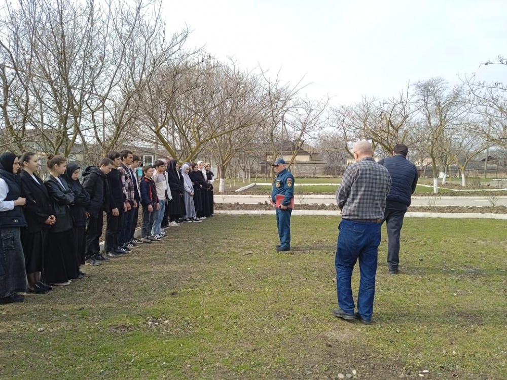 Начальник отдела ГО МКУ «Управление по делам ГО и ЧС Хасавюртовского района» Абдулнасир Тавбиев провел инструктаж с персоналом и учащимися по действиям в условиях чрезвычайных ситуаций, раздал памятки по правилам поведения во время землетрясения и пожара.
