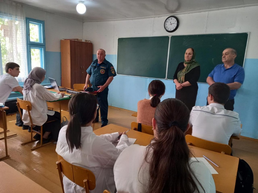 Начальник отдела ГО МКУ «Управление по делам ГО и ЧС Хасавюртовского района» Абдулнасир Тавбиев и главный специалист Абдурашид Гамзатов провели инструктивную беседу с руководством и педагогическим коллективом по правилам поведения при ЧС различного характера (пожар, землетрясение) и при угрозе или возникновении террористических актов, ознакомили присутствующих с основными понятиями в области гражданской обороны, а также приняли участие при проведении практической (учебной) эвакуации учащихся (воспитанников) из здания школ и детских садов.