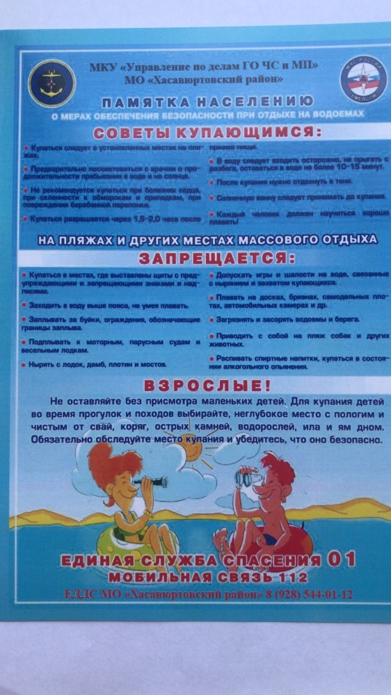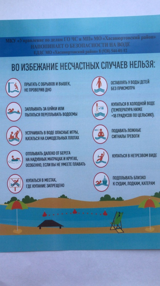 МКУ «Управление по делам ГО ЧС и МП» МО «Хасавюртовский район» напоминает о правилах безопасного поведения на водных объектах, которые помогут избежать непредвиденные ситуации