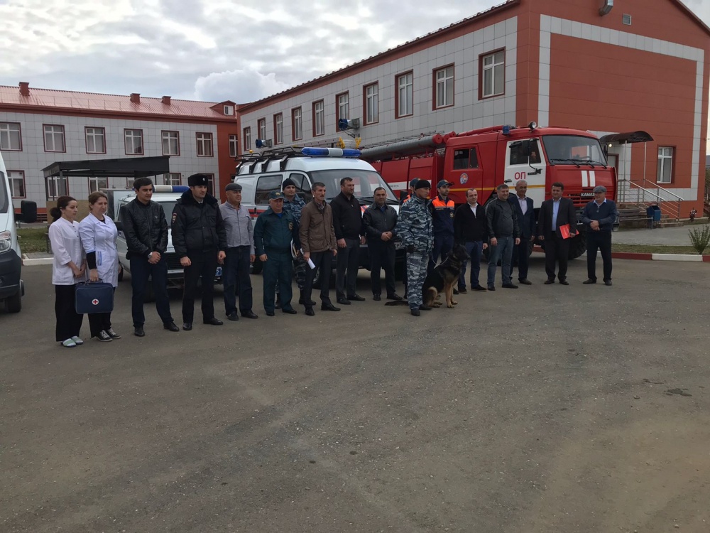 Сегодня, 28.10.2022 года, согласно Постановления Главы МО «Хасавюртовский район» А.А.Алибекова, на территории Эндирейского СОШ № 2 им. А.А.Алиханова проведено учебно-тренировочное мероприятие по теме: «Отработка Алгоритма действий персонала образовательных организаций, работников частных охранных организаций и обучающихся при совершении (угрозе совершения) преступлений террористической направленности в формах вооруженного нападения, размещения взрывного устройства, захвата заложников, а также информационного взаимодействия образовательных организаций с территориальными органами МВД России, Росгвардии, ФСБ России и МЧС России». На мероприятии приняли участие руководители Управления образования МР, МКУ «Управление по делам ГО ЧС и МП», поисково-спасательная служба с.Эндирей, добровольно-пожарный пост с.Эндирей, сотрудники ОМВД России по Хасавюртовскому району (кинологи) и Росгвардия. Организовал и руководил данным мероприятием начальник АТК МО «Хасавюртовский район» Исрапил Гусейнов.