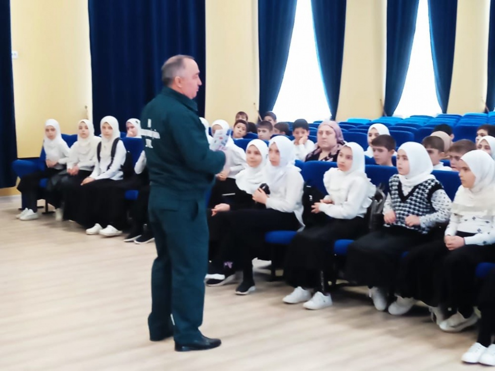 Специалисты МКУ «Управление по делам ГО ЧС и МП» МО «Хасавюртовский район» продолжают выездные занятия в школах по соблюдению правил пожарной безопасности и профилактики ЧС
